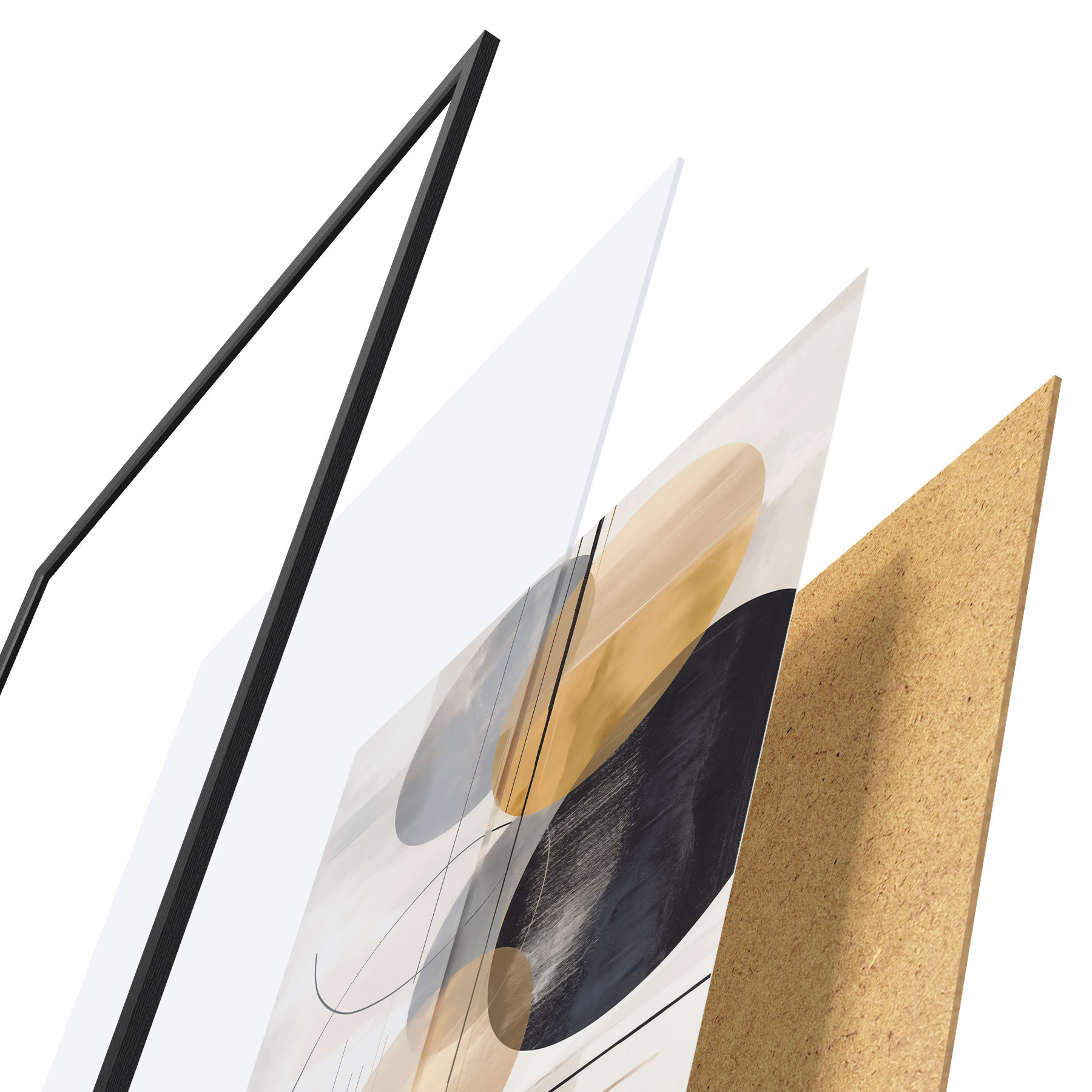 El póster consta de marco, plexiglás, imagen impresa y soporte de aglomerado. El póster puede colgarse inmediatamente en la pared gracias a los soportes de la parte posterior.