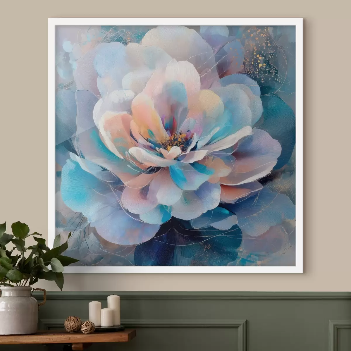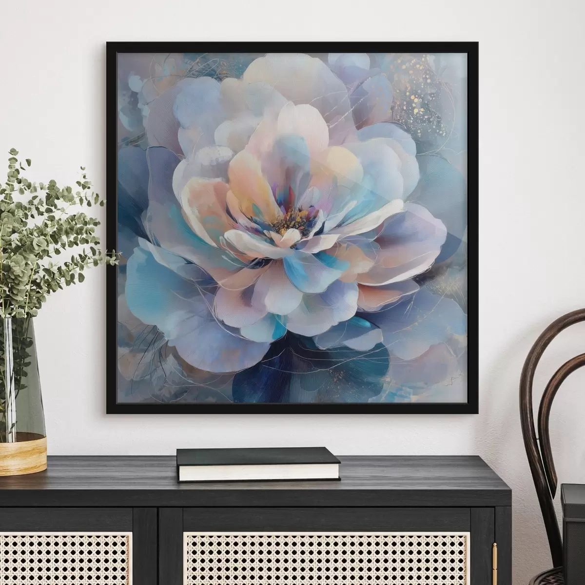 Poster Flor abstracta en tonos rosas y azules, en estilo pictórico contemporáneo f48185