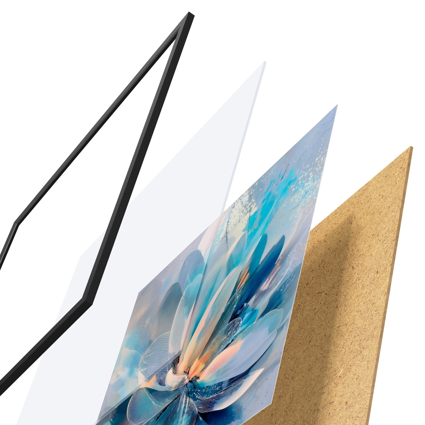 El póster consta de marco, plexiglás, imagen impresa y soporte de aglomerado. El póster puede colgarse inmediatamente en la pared gracias a los soportes de la parte posterior.