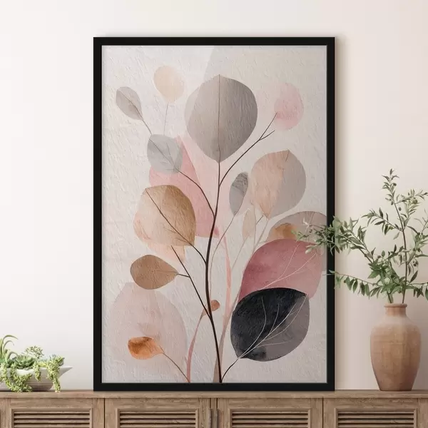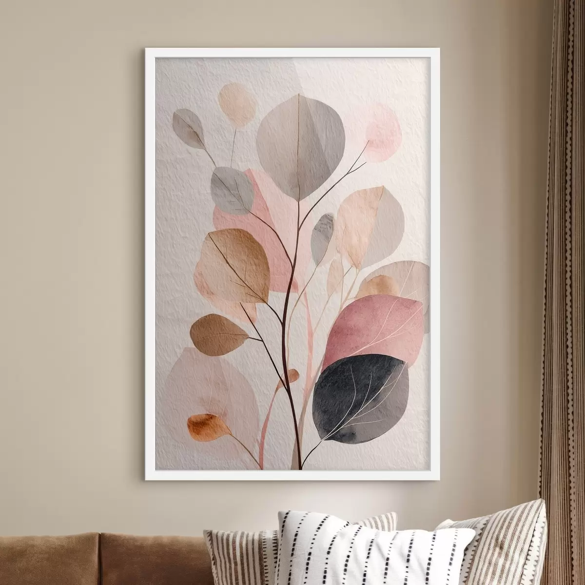 Poster Rama abstracta con hojas redondeadas en tonos cálidos de beige y coral Nr f48187