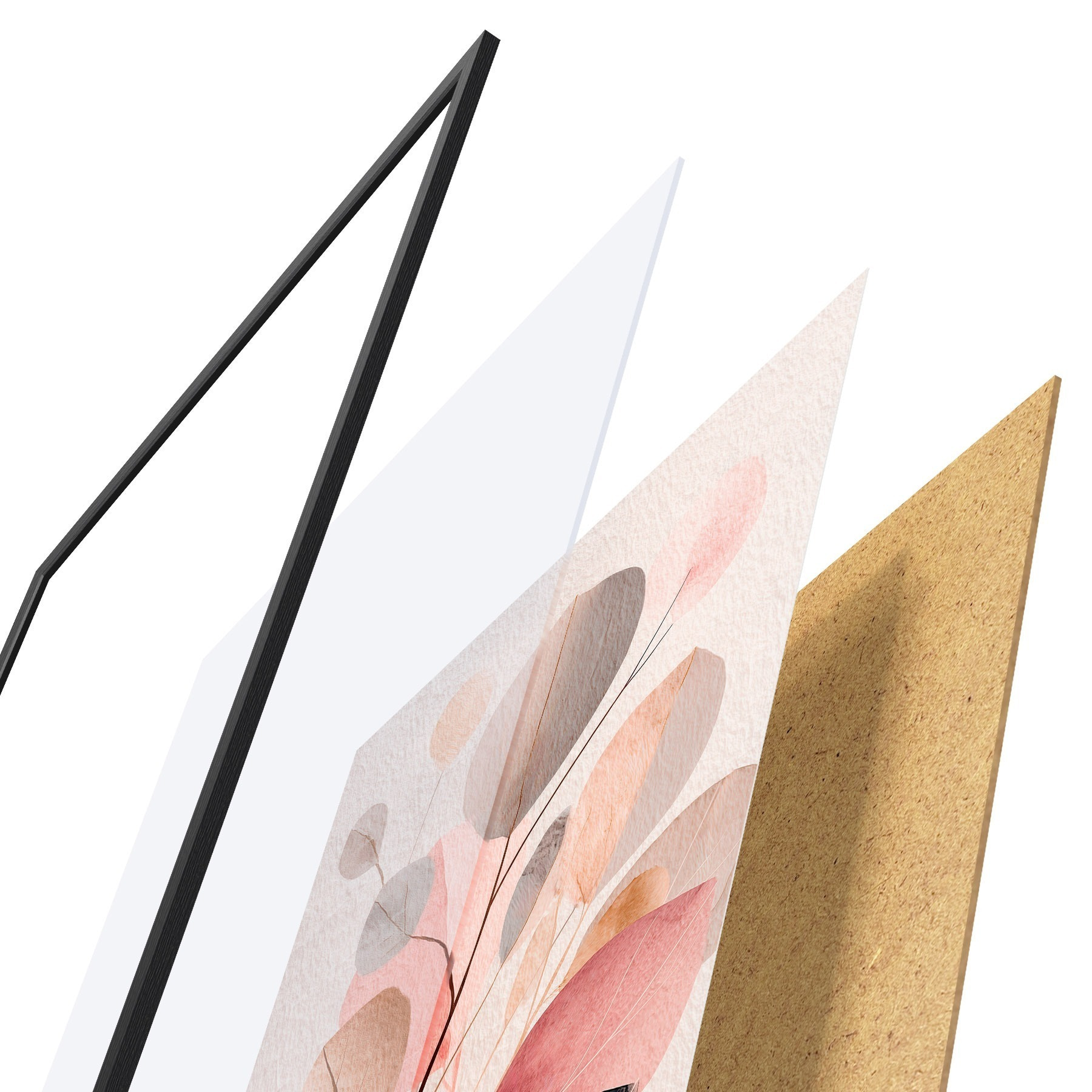 El póster consta de marco, plexiglás, imagen impresa y soporte de aglomerado. El póster puede colgarse inmediatamente en la pared gracias a los soportes de la parte posterior.