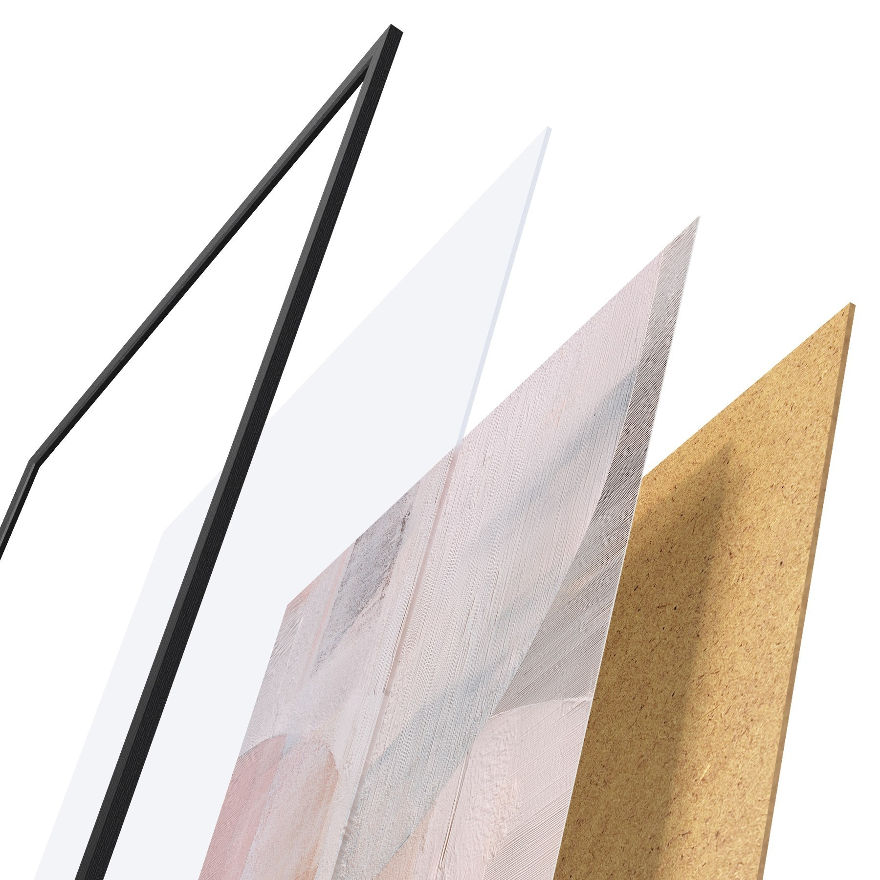 El póster consta de marco, plexiglás, imagen impresa y soporte de aglomerado. El póster puede colgarse inmediatamente en la pared gracias a los soportes de la parte posterior.