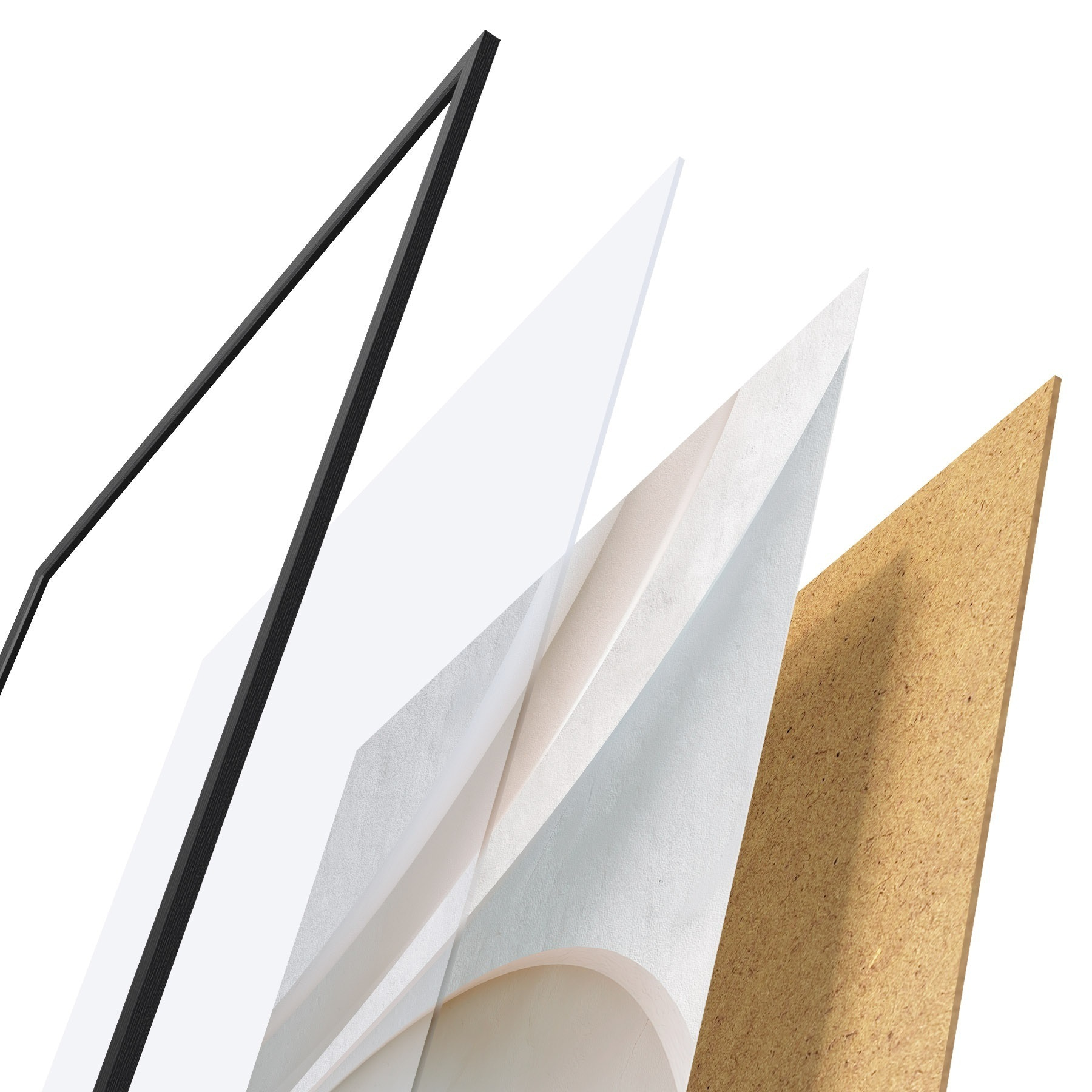 El póster consta de marco, plexiglás, imagen impresa y soporte de aglomerado. El póster puede colgarse inmediatamente en la pared gracias a los soportes de la parte posterior.