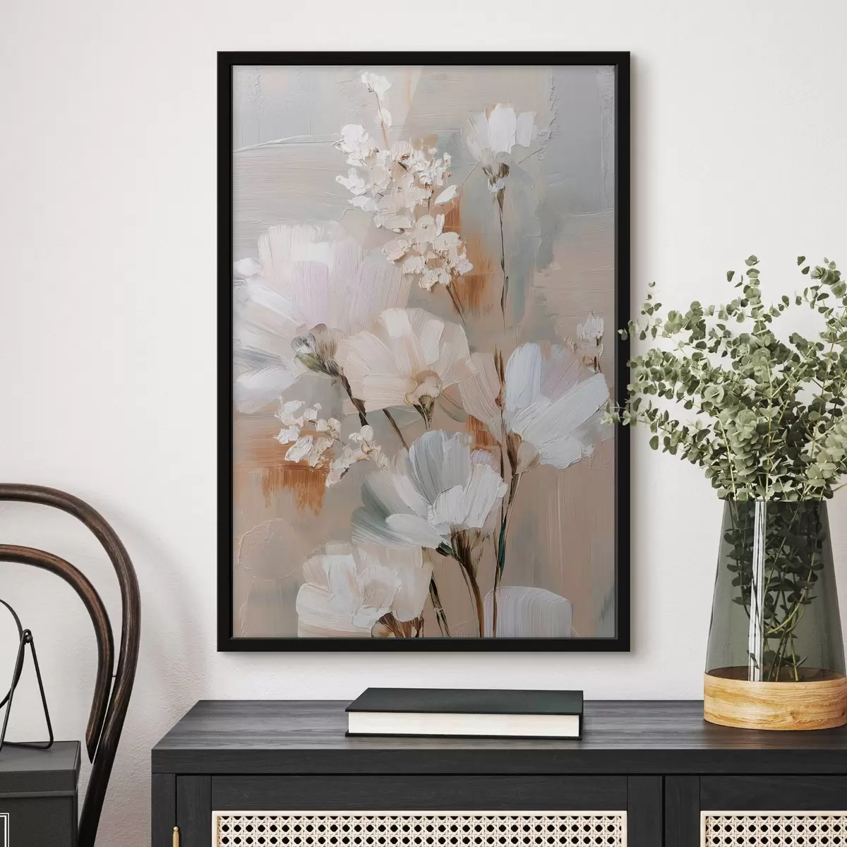 Poster Composición floral en tonos pastel al estilo de la pintura al óleo f48194