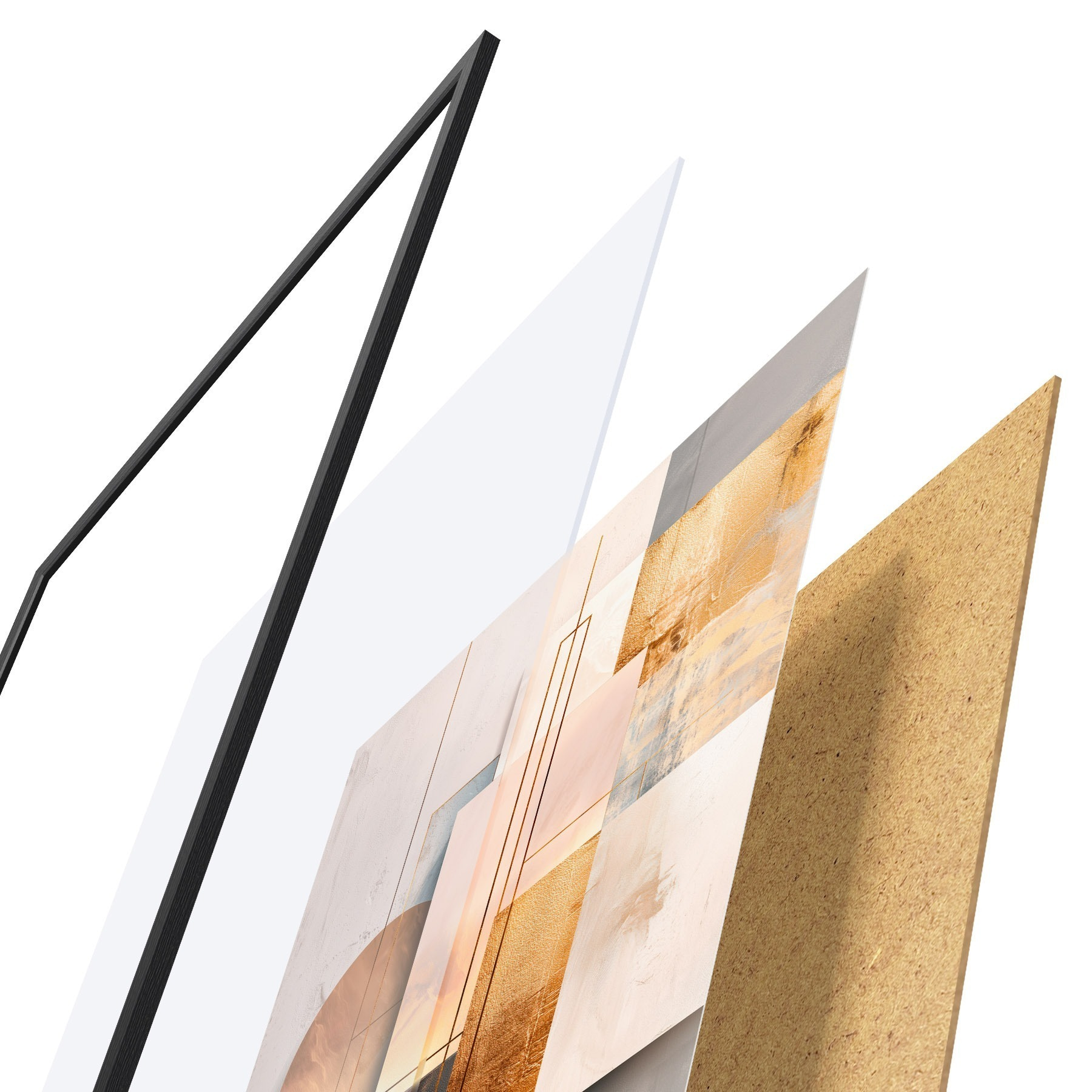 El póster consta de marco, plexiglás, imagen impresa y soporte de aglomerado. El póster puede colgarse inmediatamente en la pared gracias a los soportes de la parte posterior.
