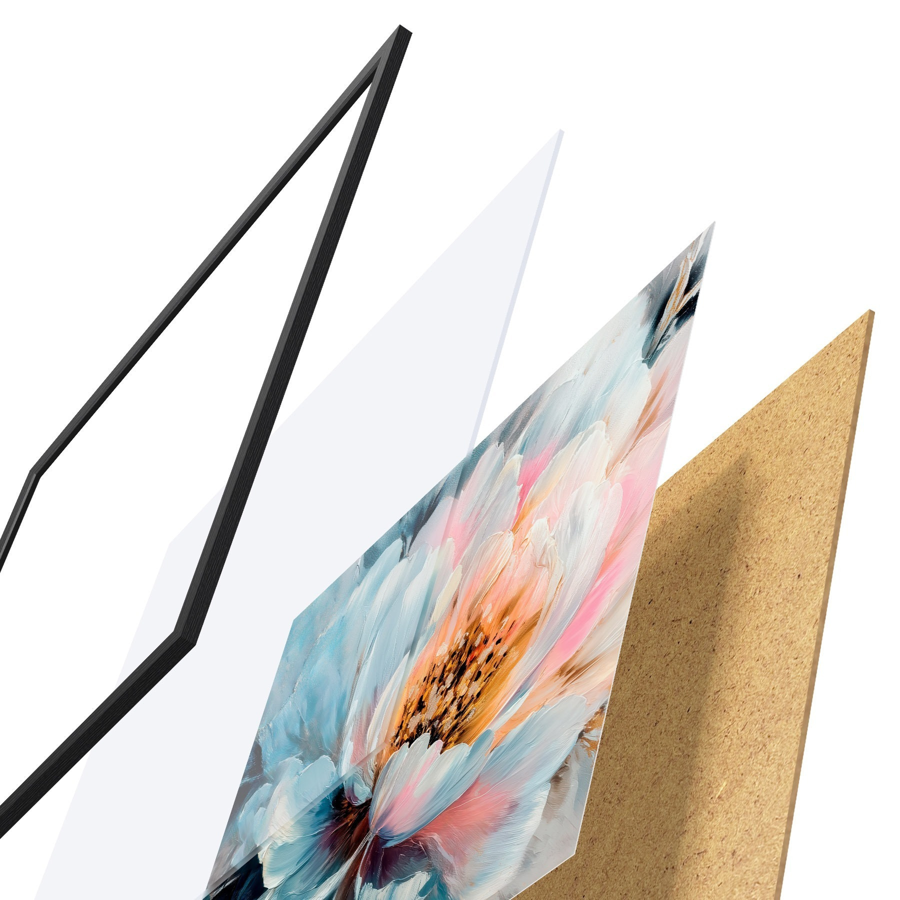 El póster consta de marco, plexiglás, imagen impresa y soporte de aglomerado. El póster puede colgarse inmediatamente en la pared gracias a los soportes de la parte posterior.