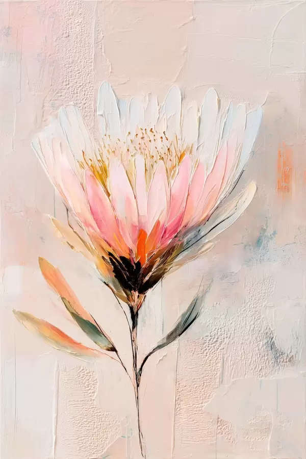 Poster Flor de protea en suaves tonos rosados, al estilo de una pintura al óleo f48205