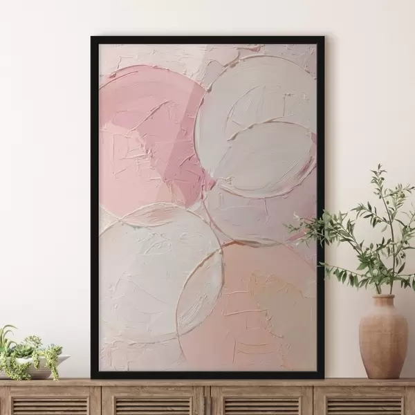Poster Composición abstracta con círculos en suaves tonos rosados, al estilo de la pintura al óleo f48207