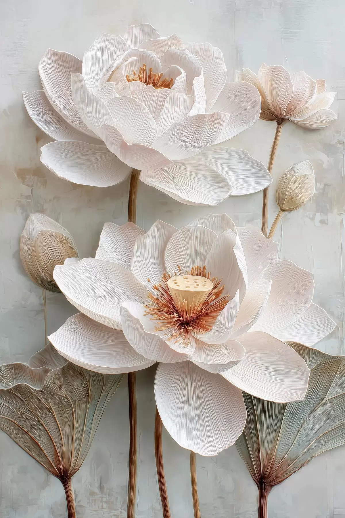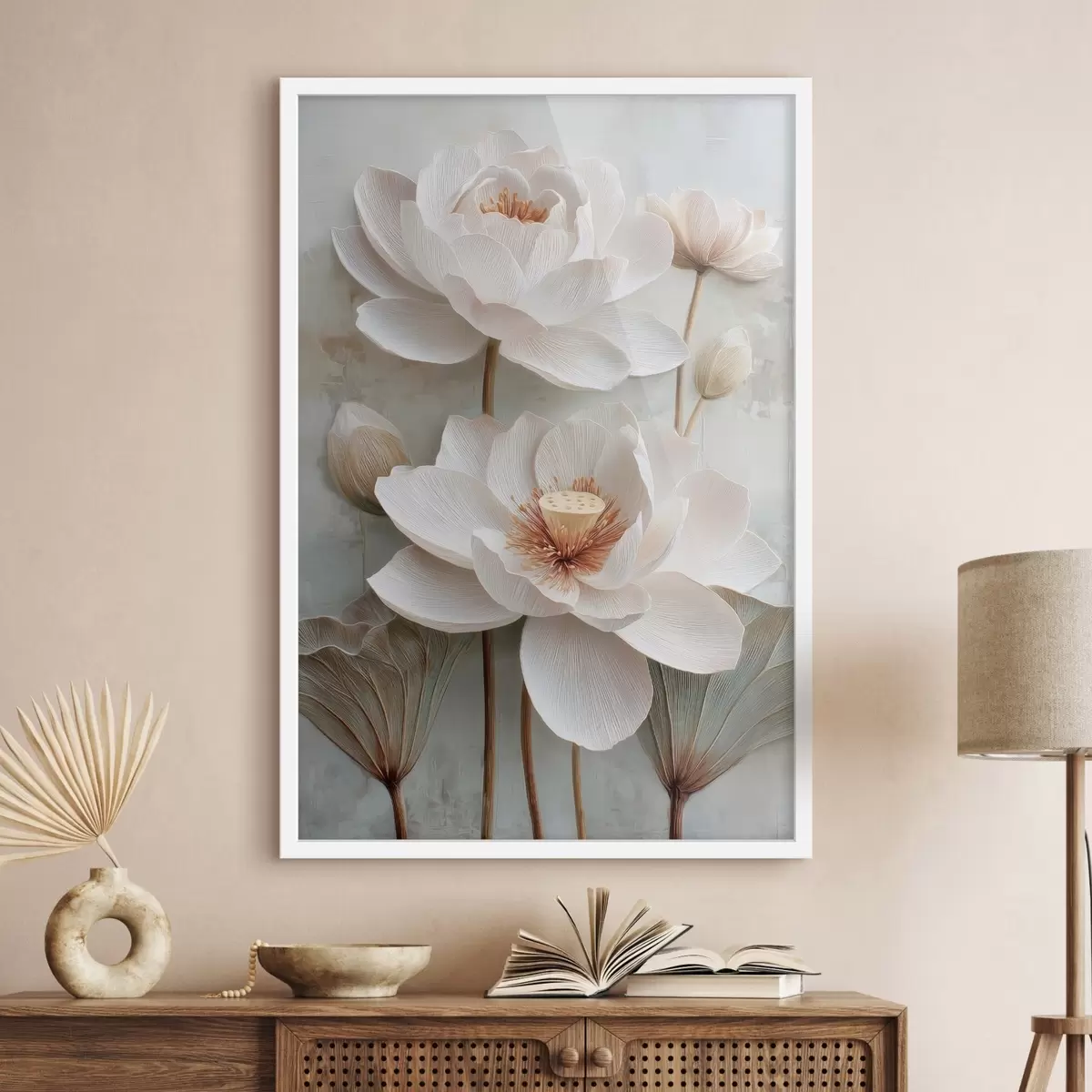 Poster Flores de loto en tonos pastel claros, al estilo de la pintura al óleo f48213
