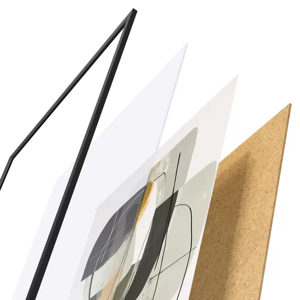 El póster consta de marco, plexiglás, imagen impresa y soporte de aglomerado. El póster puede colgarse inmediatamente en la pared gracias a los soportes de la parte posterior.