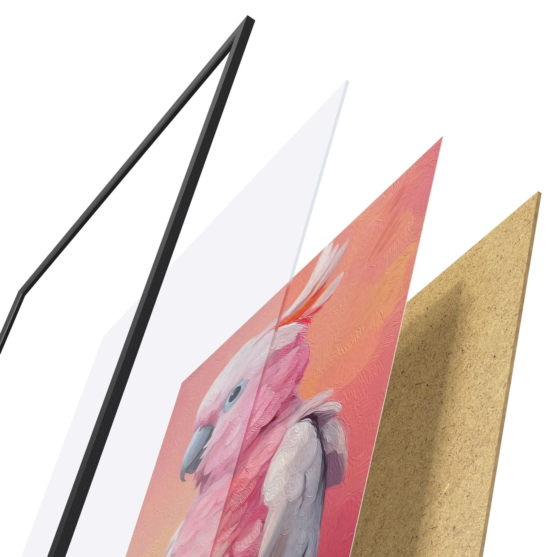 El póster consta de marco, plexiglás, imagen impresa y soporte de aglomerado. El póster puede colgarse inmediatamente en la pared gracias a los soportes de la parte posterior.
