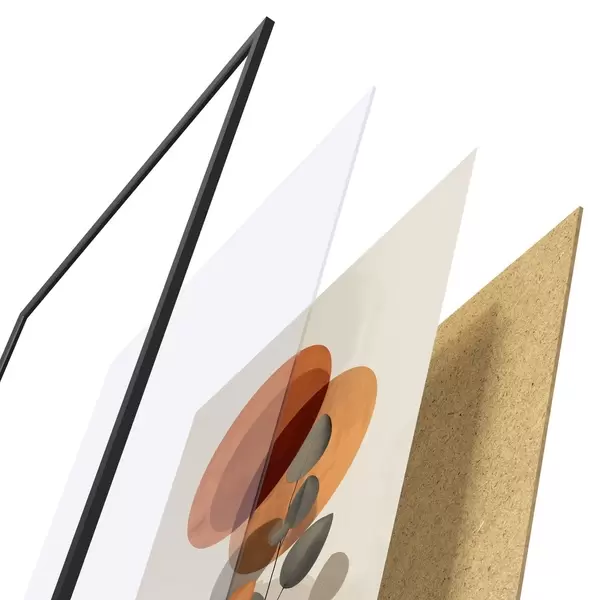 El póster consta de marco, plexiglás, imagen impresa y soporte de aglomerado. El póster puede colgarse inmediatamente en la pared gracias a los soportes de la parte posterior.