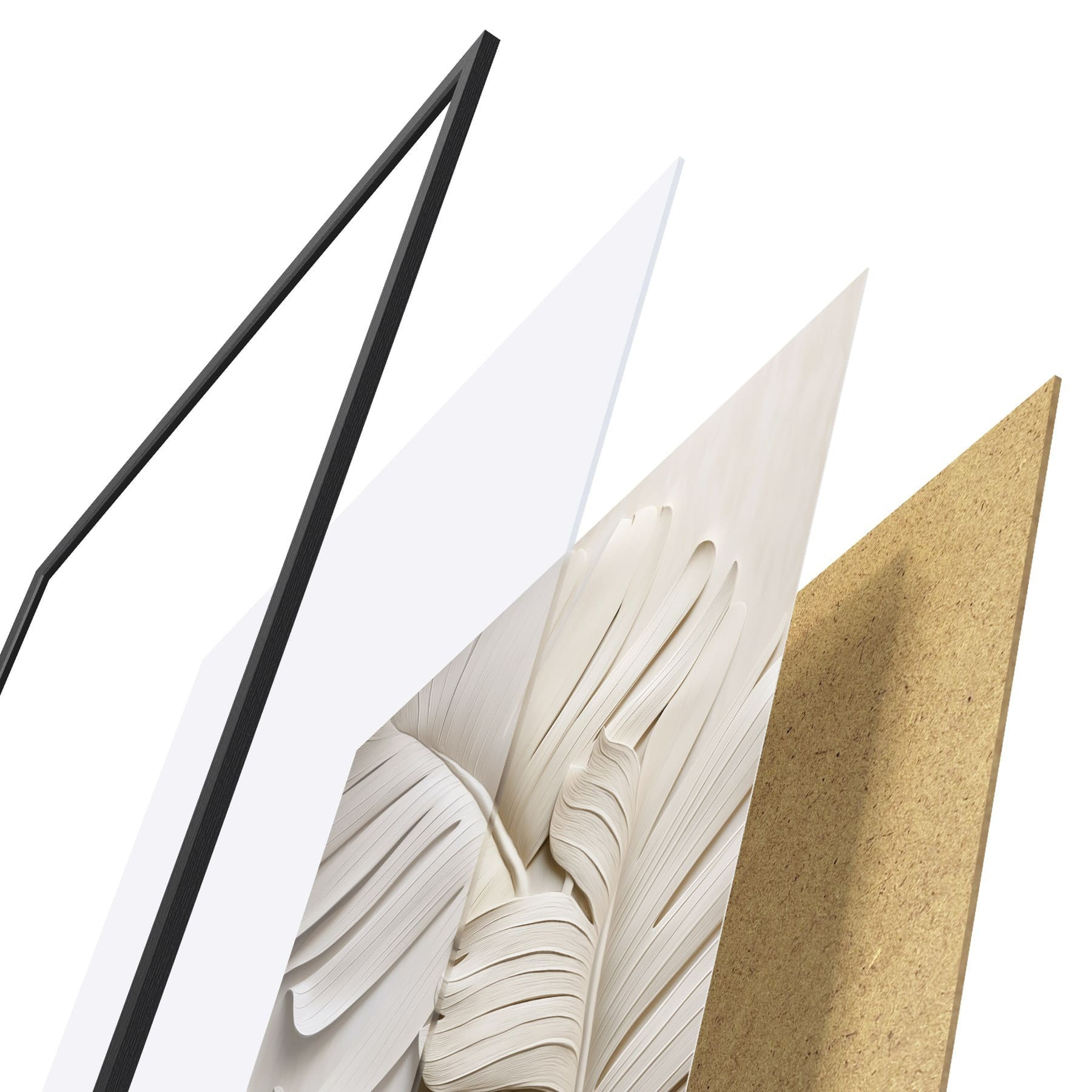 El póster consta de marco, plexiglás, imagen impresa y soporte de aglomerado. El póster puede colgarse inmediatamente en la pared gracias a los soportes de la parte posterior.