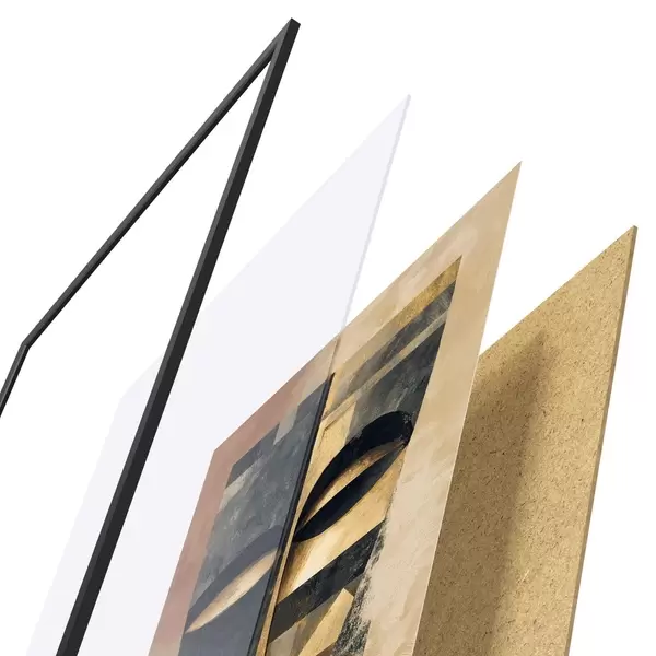 El póster consta de marco, plexiglás, imagen impresa y soporte de aglomerado. El póster puede colgarse inmediatamente en la pared gracias a los soportes de la parte posterior.