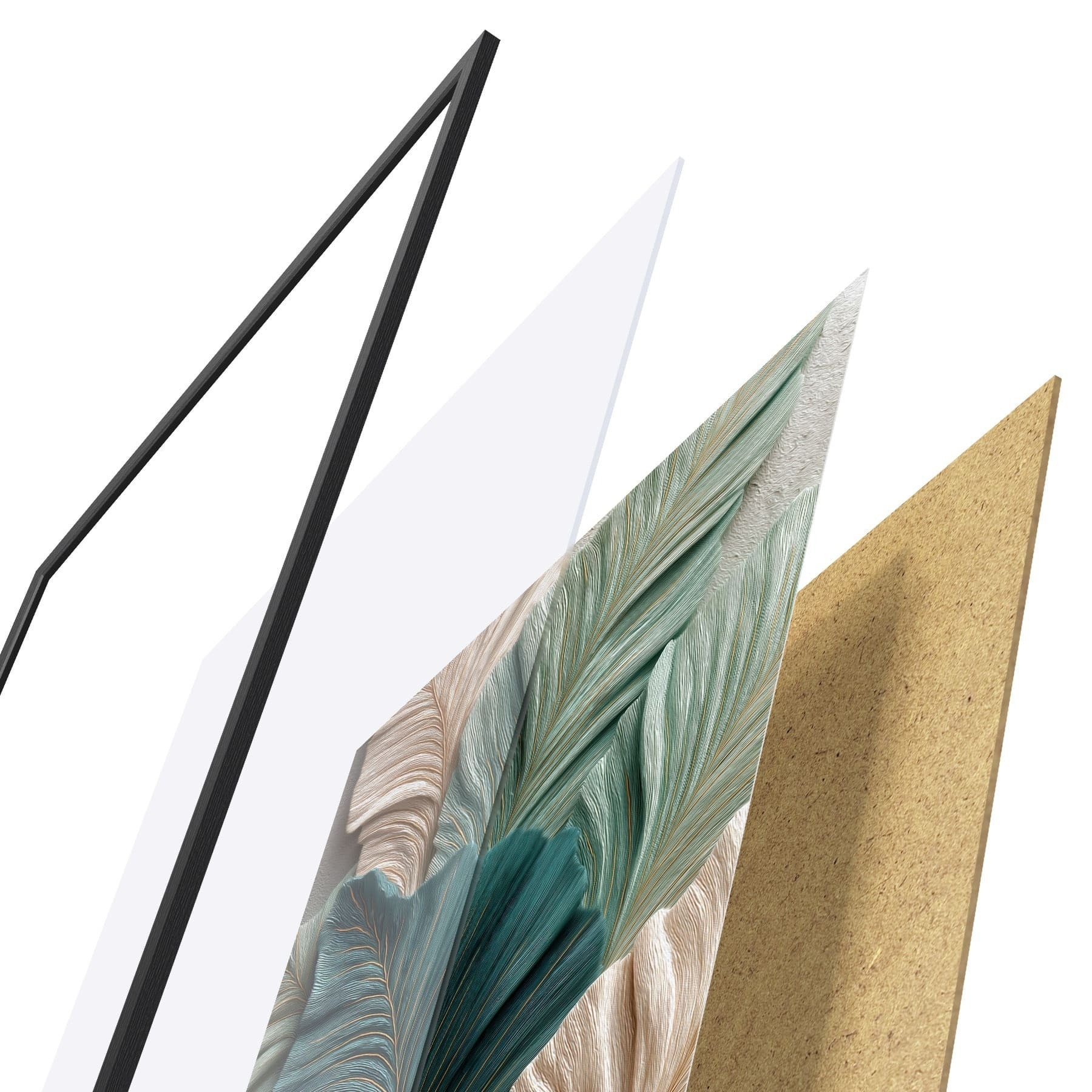 El póster consta de marco, plexiglás, imagen impresa y soporte de aglomerado. El póster puede colgarse inmediatamente en la pared gracias a los soportes de la parte posterior.