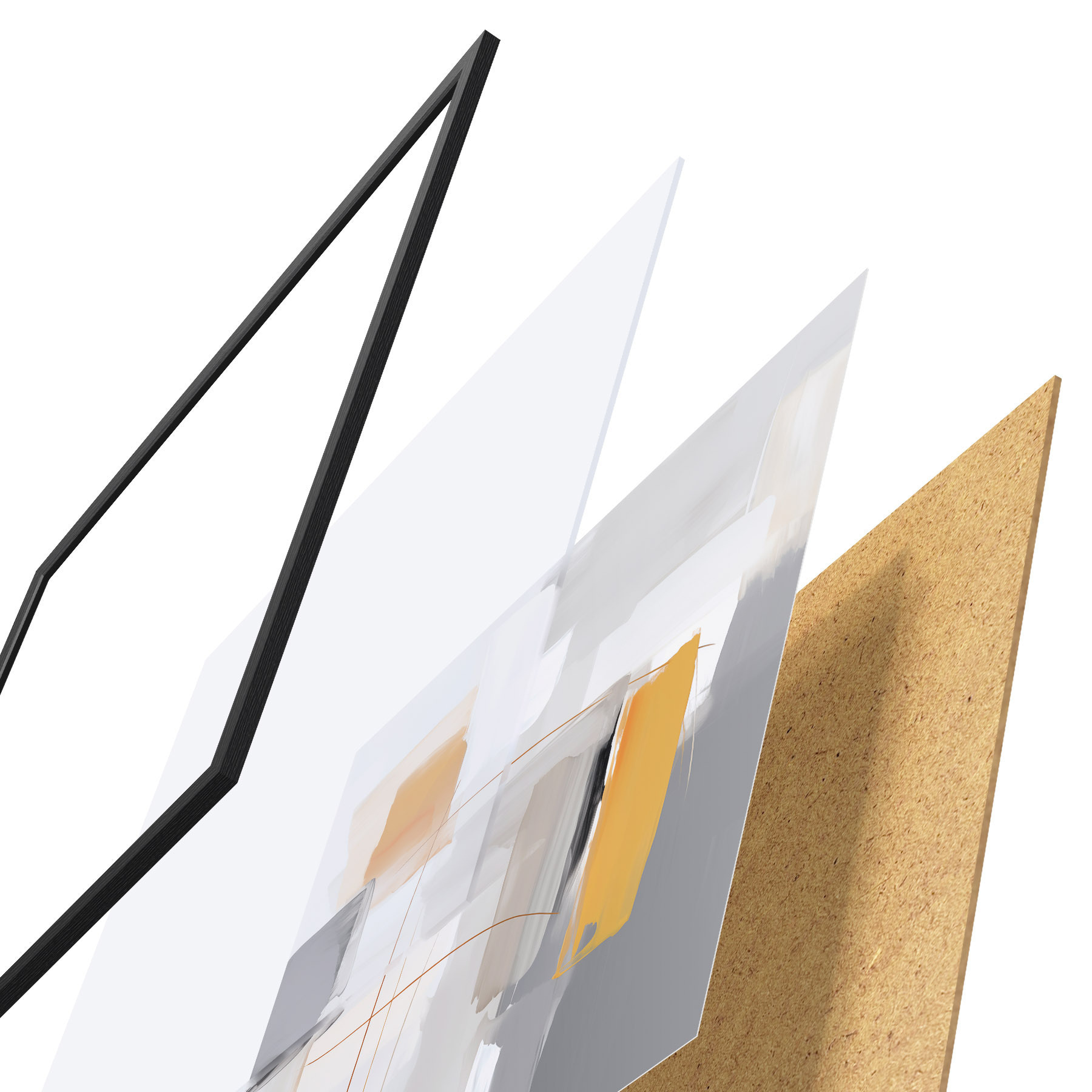 El póster consta de marco, plexiglás, imagen impresa y soporte de aglomerado. El póster puede colgarse inmediatamente en la pared gracias a los soportes de la parte posterior.