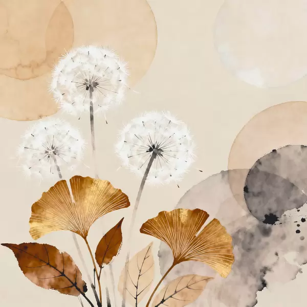 Poster Dientes de león y hojas de ginkgo en estilo abstracto f48279
