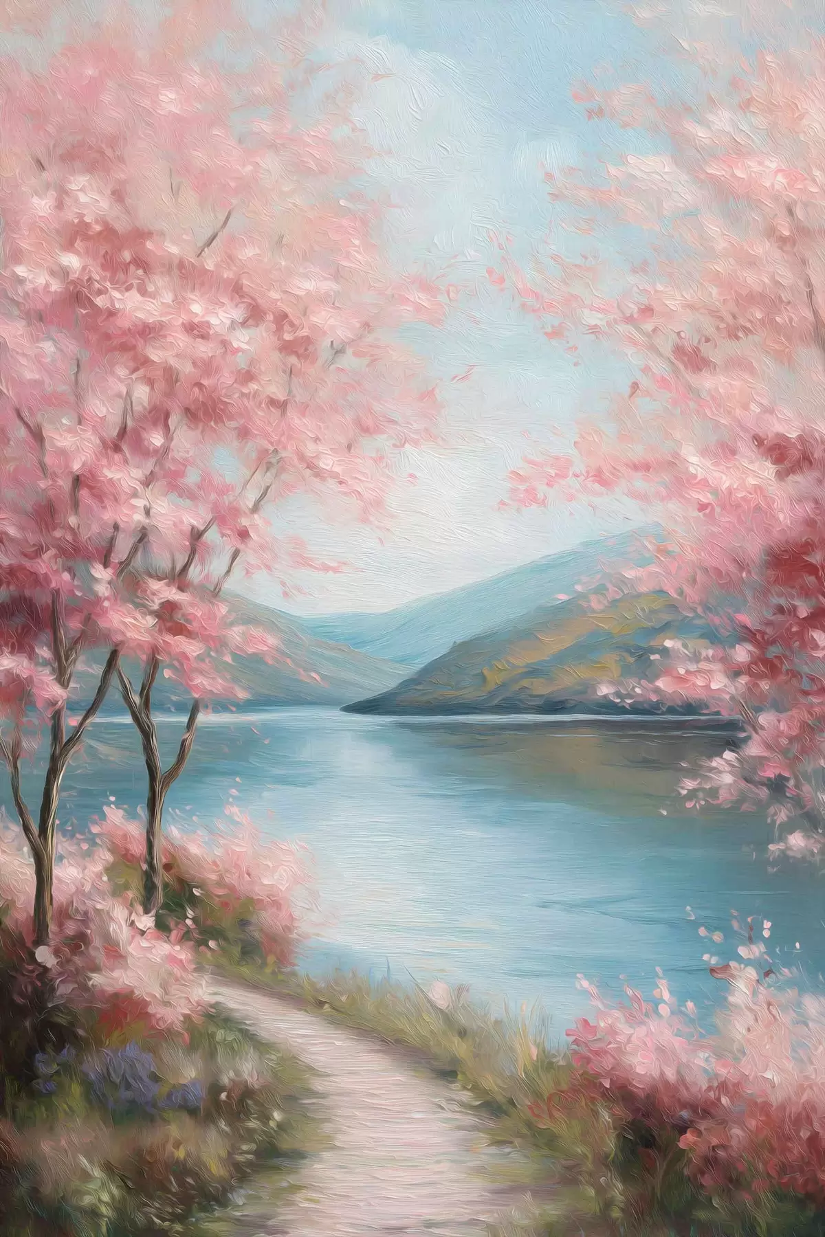 Poster Paisaje con árboles rosados en estilo óleo. Nr f48290