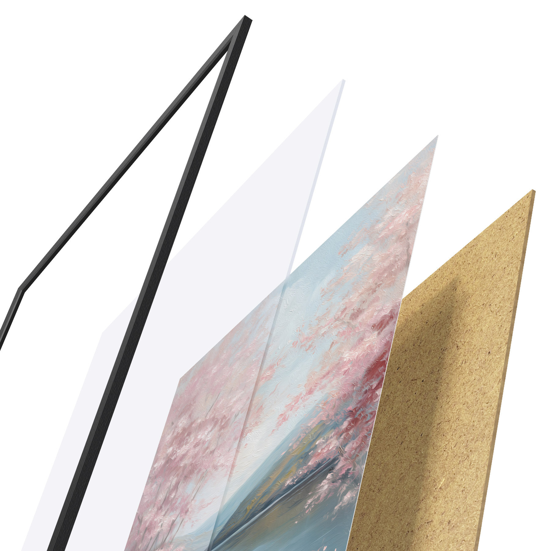 Vendemos cuadros en bastidor: se trata de un marco de madera sobre el que se extiende el lienzo. Este cuadro no necesita marco; puedes colgarlo directamente en la pared.
