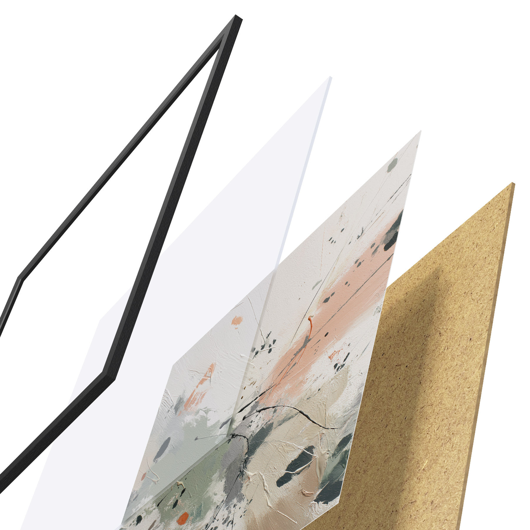 Vendemos cuadros en bastidor: se trata de un marco de madera sobre el que se extiende el lienzo. Este cuadro no necesita marco; puedes colgarlo directamente en la pared.