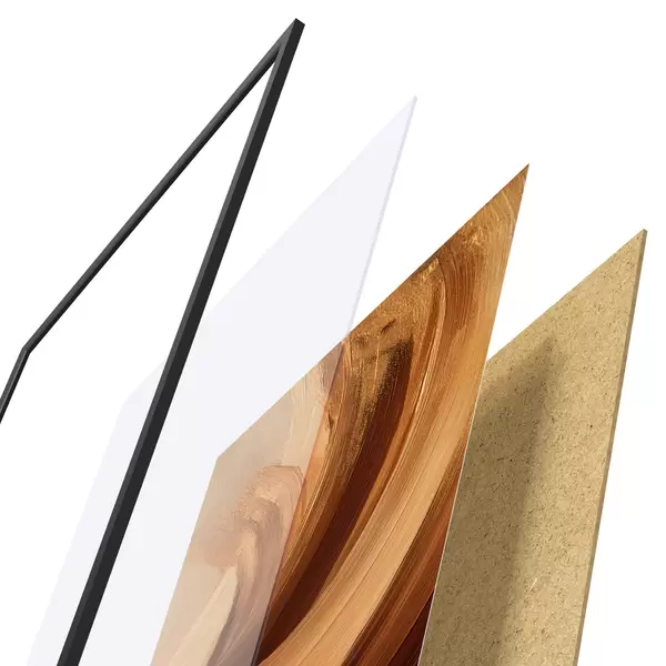 El póster consta de marco, plexiglás, imagen impresa y soporte de aglomerado. El póster puede colgarse inmediatamente en la pared gracias a los soportes de la parte posterior.