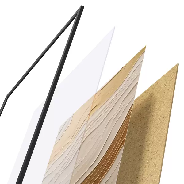 El póster consta de marco, plexiglás, imagen impresa y soporte de aglomerado. El póster puede colgarse inmediatamente en la pared gracias a los soportes de la parte posterior.