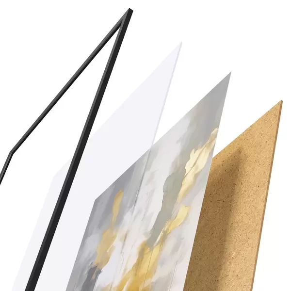 El póster consta de marco, plexiglás, imagen impresa y soporte de aglomerado. El póster puede colgarse inmediatamente en la pared gracias a los soportes de la parte posterior.