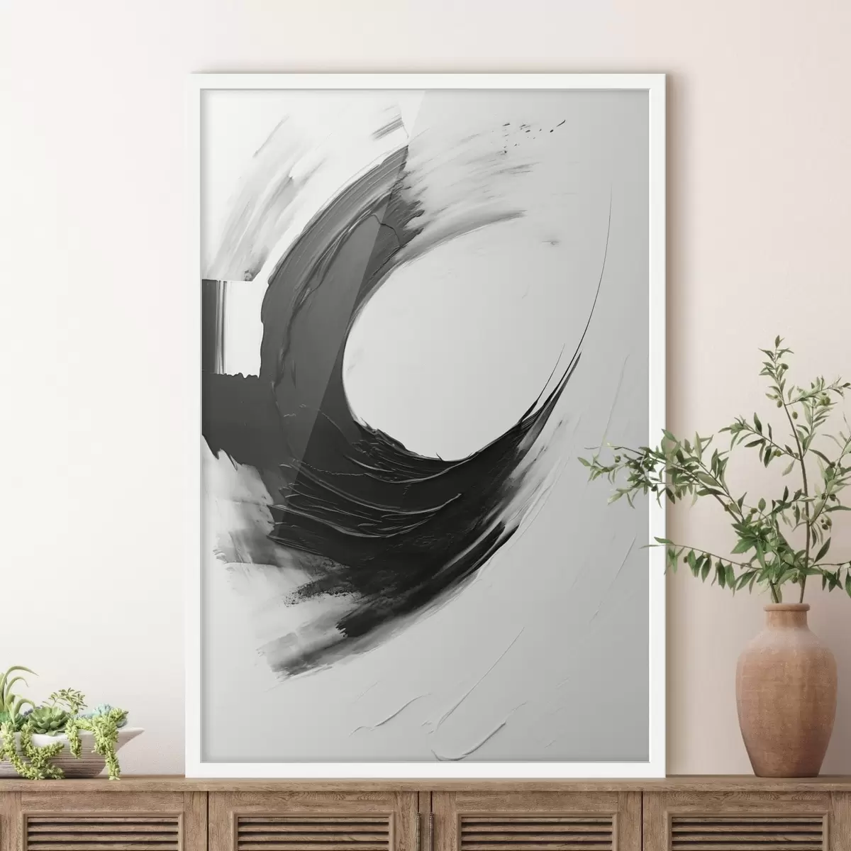 Poster Pincelada abstracta en negro sobre fondo claro f48340