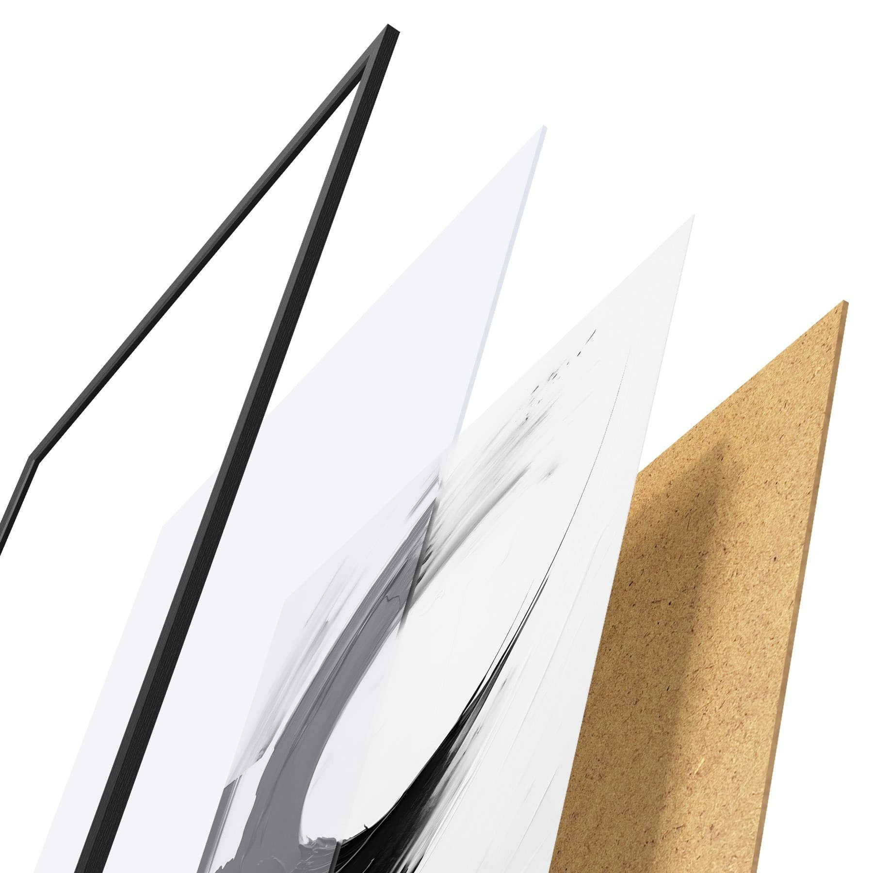 El póster consta de marco, plexiglás, imagen impresa y soporte de aglomerado. El póster puede colgarse inmediatamente en la pared gracias a los soportes de la parte posterior.