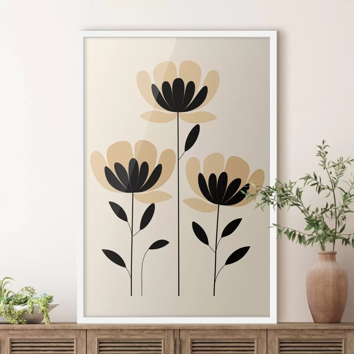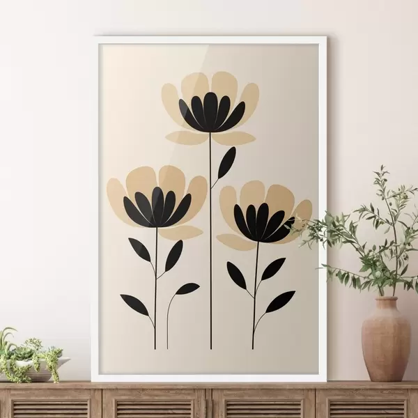 Poster Flores minimalistas en tonos negros y beige Nr f48353