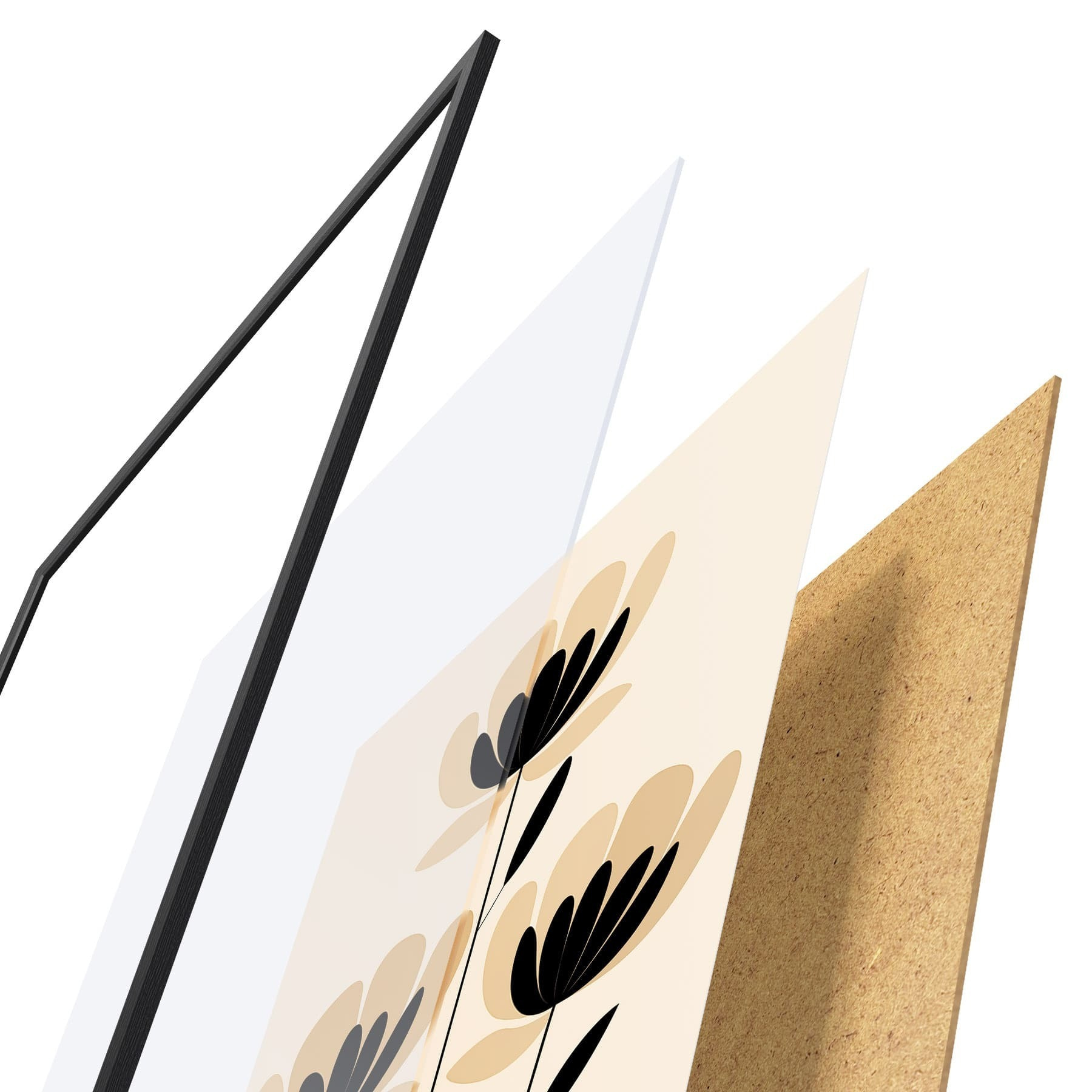 El póster consta de marco, plexiglás, imagen impresa y soporte de aglomerado. El póster puede colgarse inmediatamente en la pared gracias a los soportes de la parte posterior.