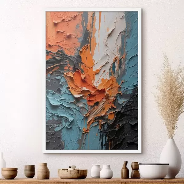 Poster Pinceladas abstractas y luminosas en tonos naranjas y azules Nr f48359