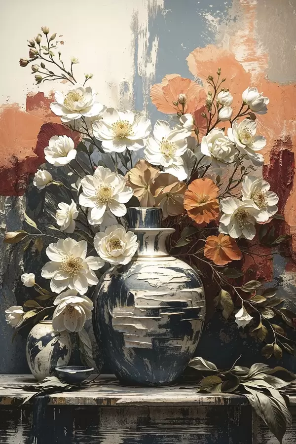 Poster Flores en jarrones frente a una pared con textura f48360