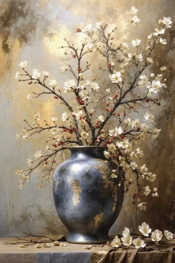 Poster Ramas en flor en un jarrón sobre un fondo neutro Nr f48361
