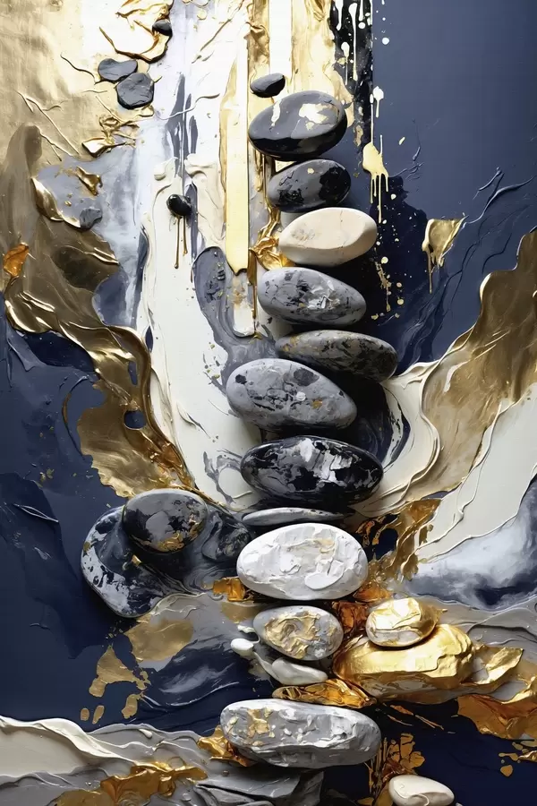 Poster Composición abstracta con piedras y trazos texturados Nr f48362