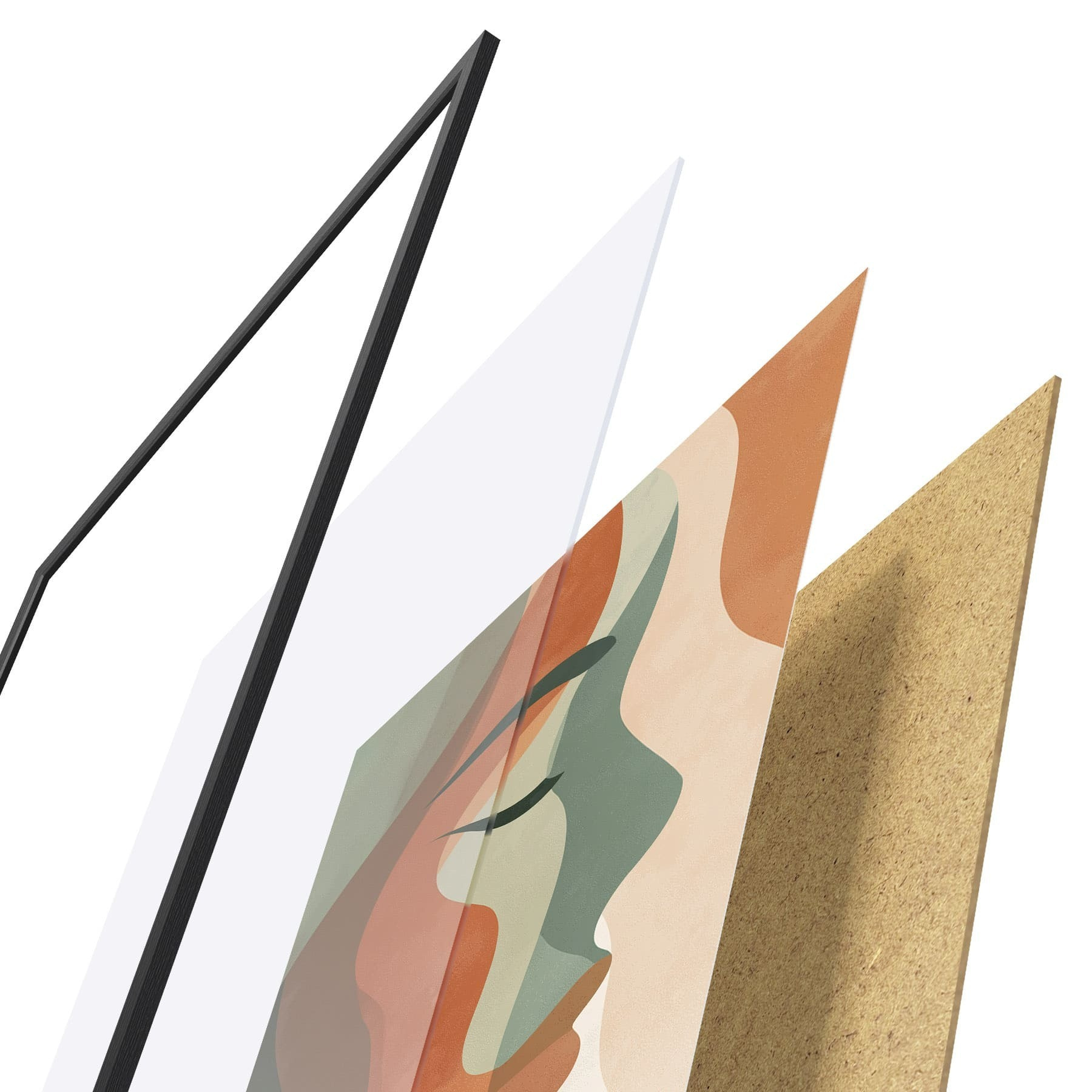 El póster consta de marco, plexiglás, imagen impresa y soporte de aglomerado. El póster puede colgarse inmediatamente en la pared gracias a los soportes de la parte posterior.