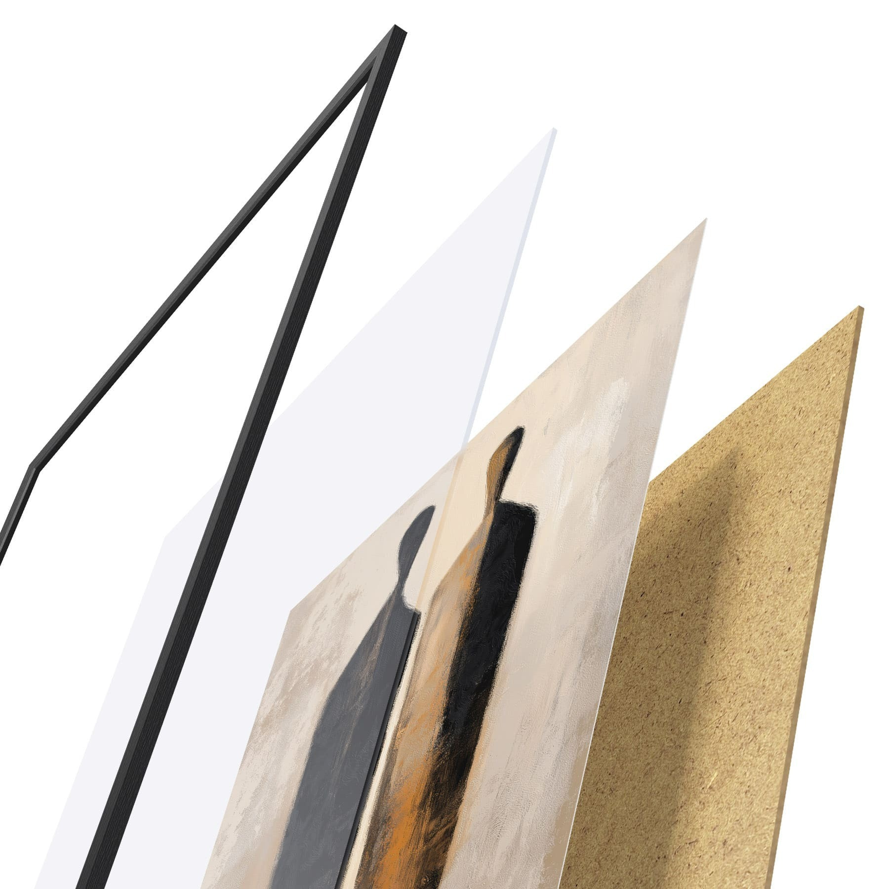 El póster consta de marco, plexiglás, imagen impresa y soporte de aglomerado. El póster puede colgarse inmediatamente en la pared gracias a los soportes de la parte posterior.