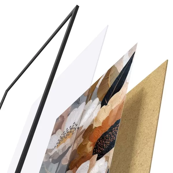 El póster consta de marco, plexiglás, imagen impresa y soporte de aglomerado. El póster puede colgarse inmediatamente en la pared gracias a los soportes de la parte posterior.