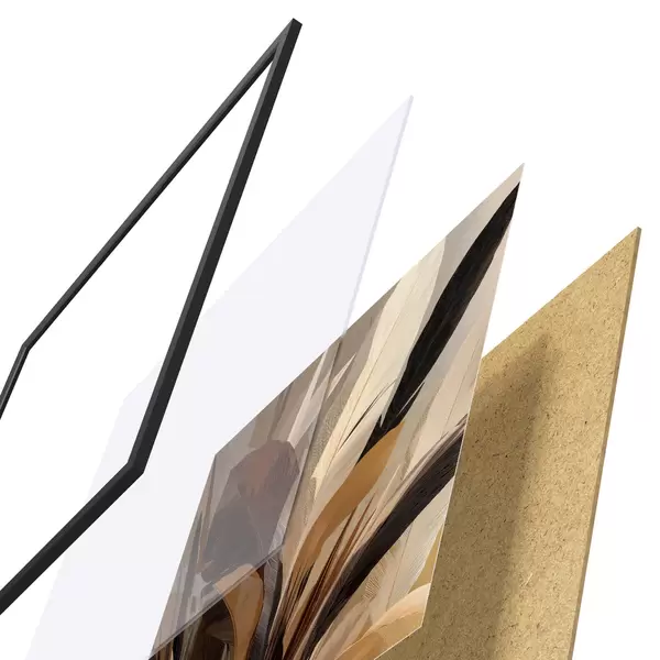 El póster consta de marco, plexiglás, imagen impresa y soporte de aglomerado. El póster puede colgarse inmediatamente en la pared gracias a los soportes de la parte posterior.