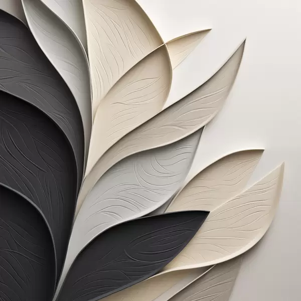 Poster Composición abstracta de hojas superpuestas, formas curvas en negro, blanco y beige, arte texturizado Nr f48382