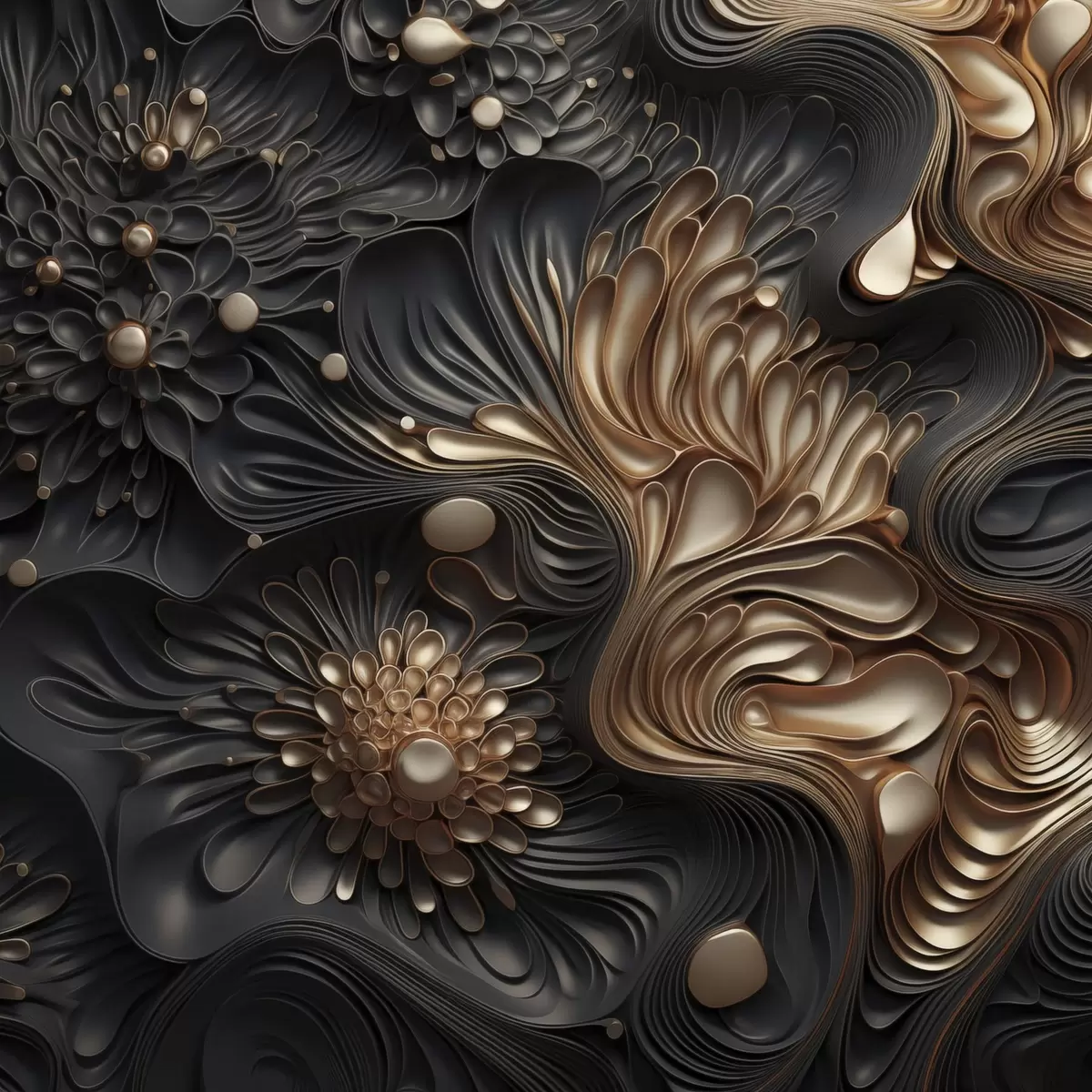 Poster Formas oscuras abstractas, fluidas y orgánicas que crean una obra de arte moderno con textura Nr f48384