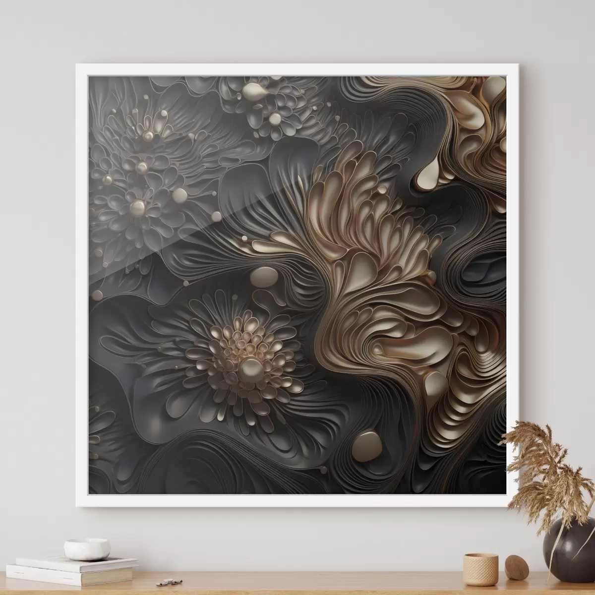 Poster Formas oscuras abstractas, fluidas y orgánicas que crean una obra de arte moderno con textura f48384