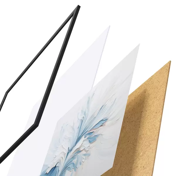 El póster consta de marco, plexiglás, imagen impresa y soporte de aglomerado. El póster puede colgarse inmediatamente en la pared gracias a los soportes de la parte posterior.