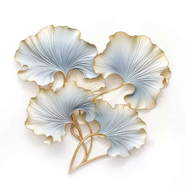 Poster Hojas de ginkgo estilizadas con toques de azul y amarillo Nr f48397
