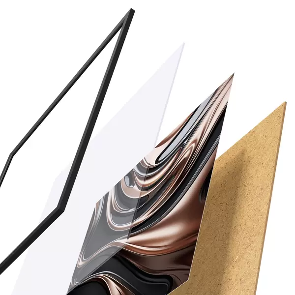 El póster consta de marco, plexiglás, imagen impresa y soporte de aglomerado. El póster puede colgarse inmediatamente en la pared gracias a los soportes de la parte posterior.
