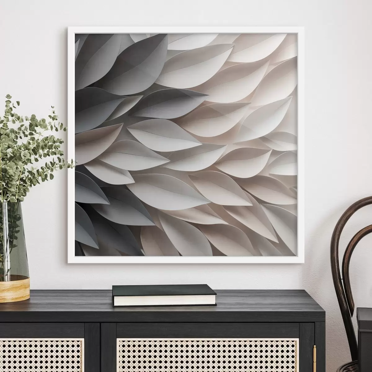 Poster Un diseño abstracto de hojas superpuestas con textura en tonos neutros de beige, crema y gris Nr f48408