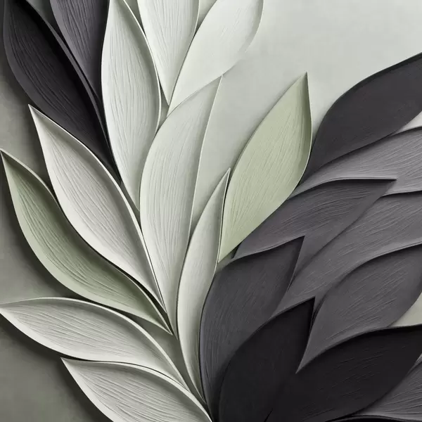 Poster Hojas estilizadas y abstractas en tonos grises, blancos y verdes apagados f48411