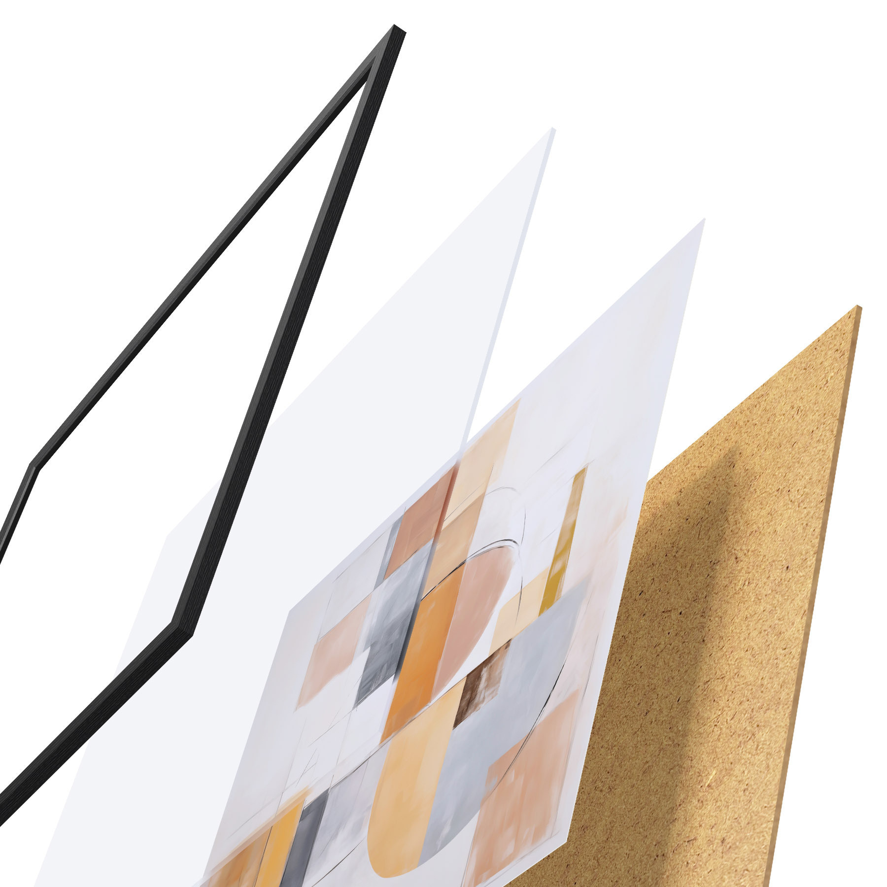 El póster consta de marco, plexiglás, imagen impresa y soporte de aglomerado. El póster puede colgarse inmediatamente en la pared gracias a los soportes de la parte posterior.