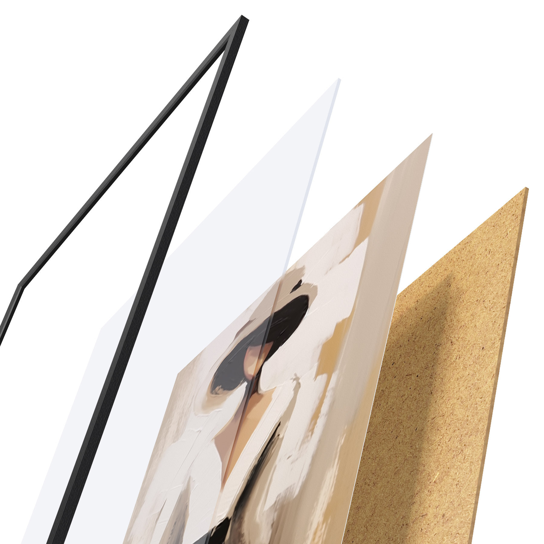 El póster consta de marco, plexiglás, imagen impresa y soporte de aglomerado. El póster puede colgarse inmediatamente en la pared gracias a los soportes de la parte posterior.