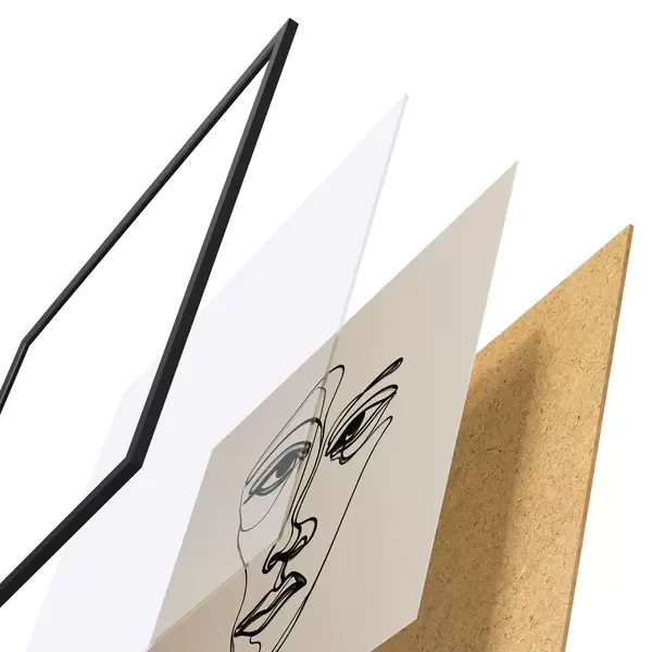 El póster consta de marco, plexiglás, imagen impresa y soporte de aglomerado. El póster puede colgarse inmediatamente en la pared gracias a los soportes de la parte posterior.